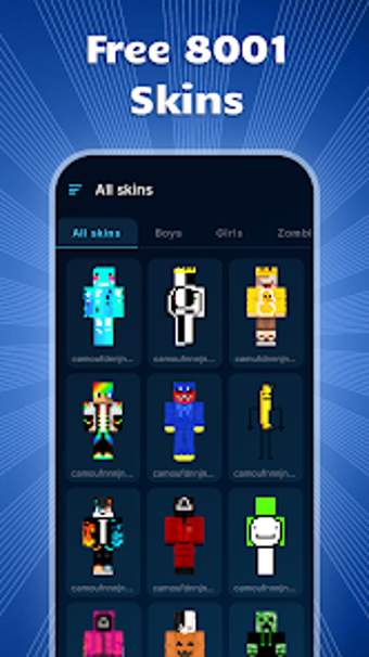 Skins for Minecraft PEは、MoonlightSolutionsによって開発されたモバイルアプリで、Minecraft用の8001以上のスキンを広範なコレクションで提供しています。Pocket Edition、Bedrock Edition、Java Editionのバージョンに対応しており、このアプリを使用すると、プレイヤーは簡単にゲーム内キャラクターをユニークでエキサイティングな外見にカスタマイズすることができます。
